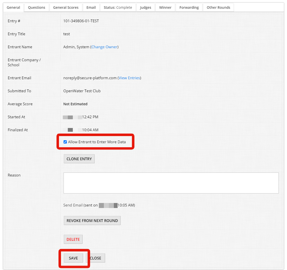Scroll down to find and check the box labeled "Allow Entrant to Enter More Data"