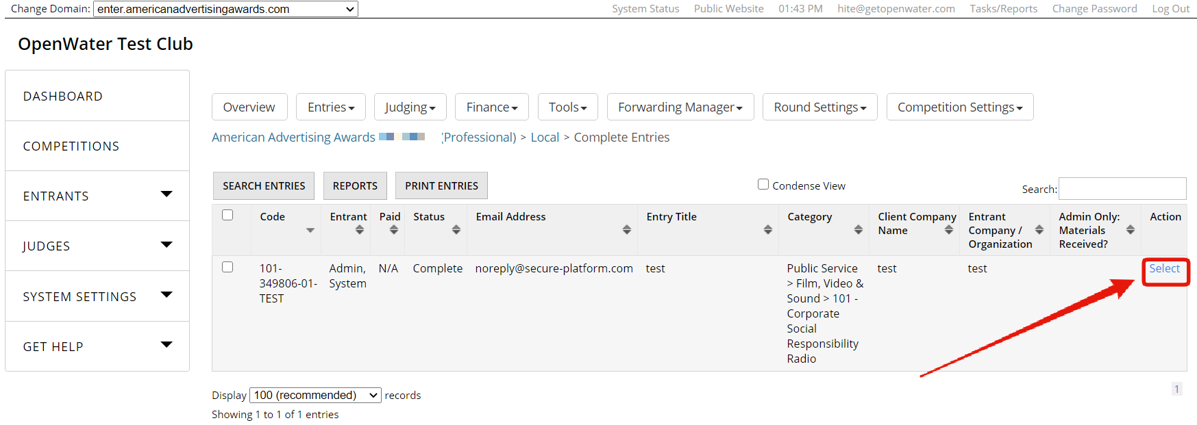 Find the desired entry and look to the right to find "Select" under the Action header