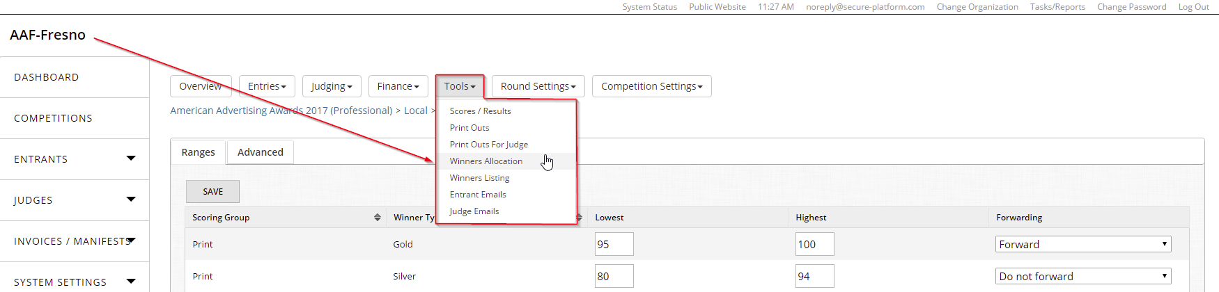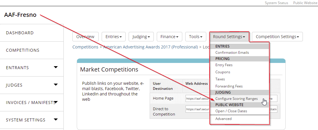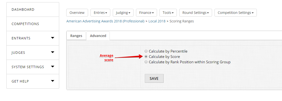 STEP 3: Access "Configure Scoring Ranges" in Round Settings
