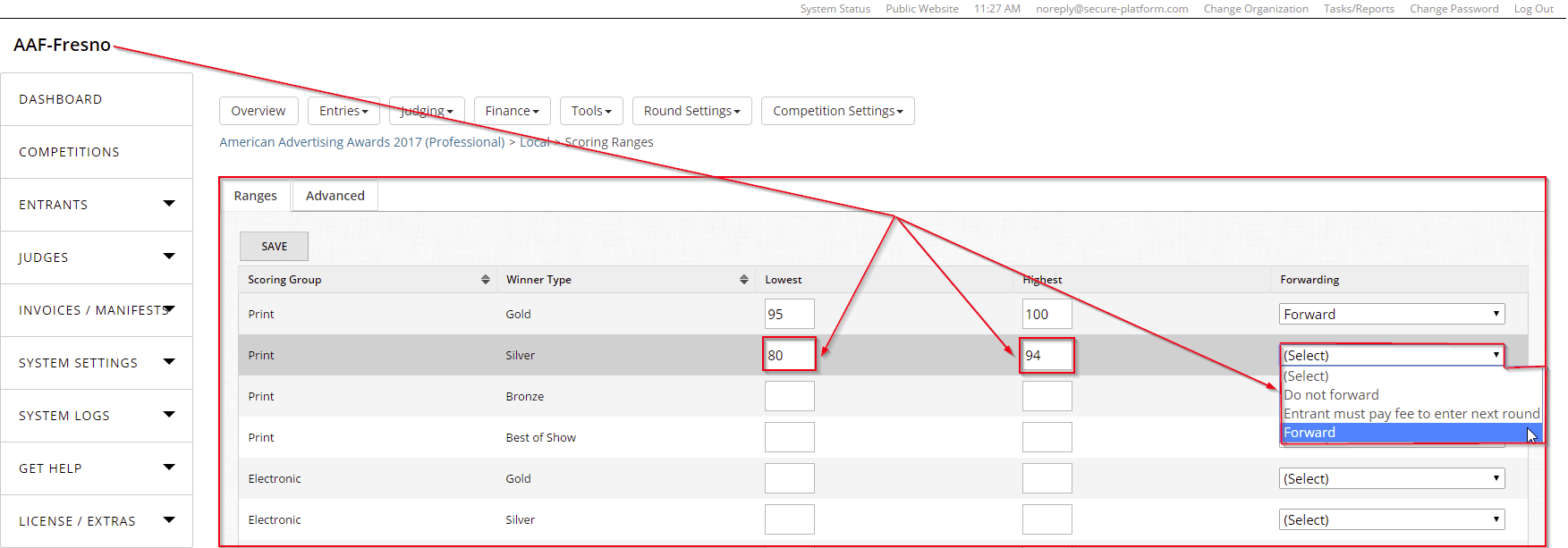 - Select "Do not forward" if you do not want to automatically forward the entries in this range to the next round