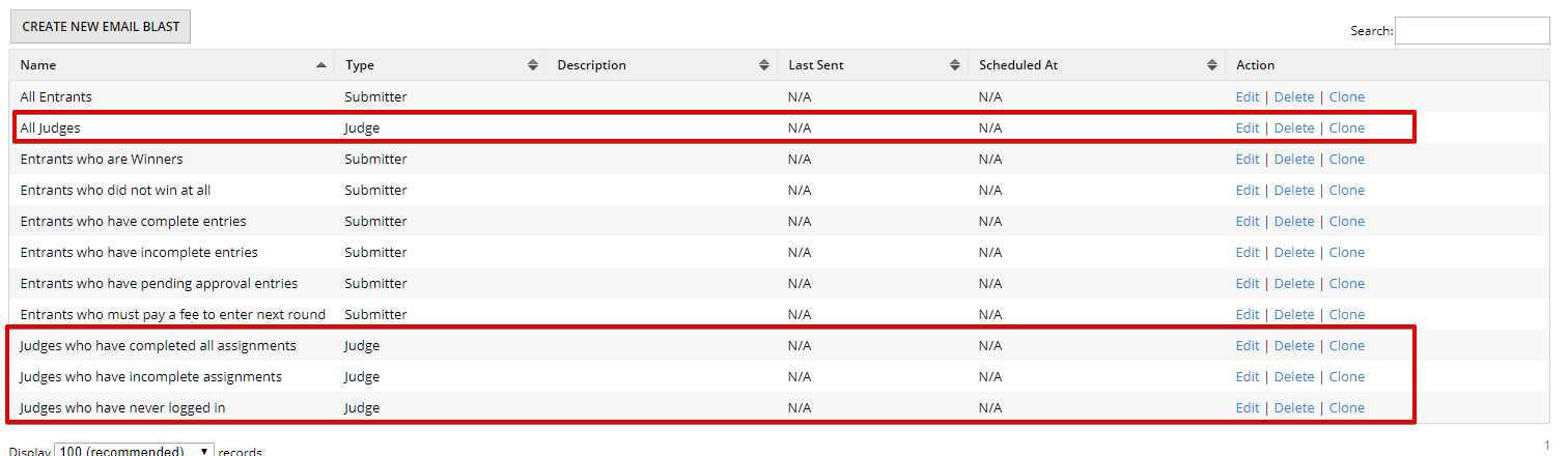 - Click Edit next to the judge email blast you wish to send.