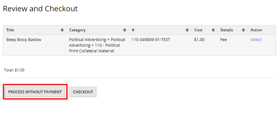 STEP 4: Check over the details and process the cart, either with or without payment