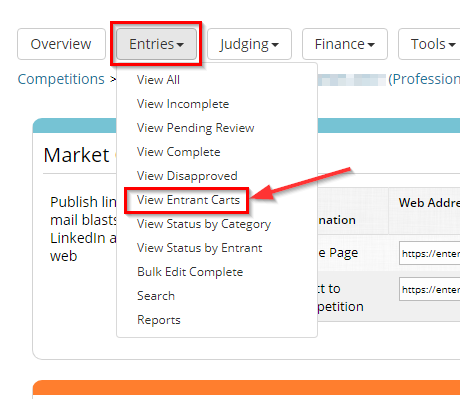 Click Entries button from the top menu, then select View Entrant Carts.