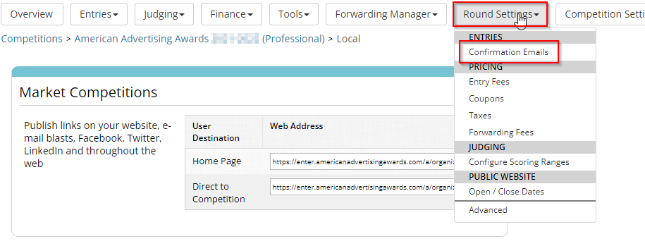 STEP 2: Go to the Round Settings >> Confirmation Emails area