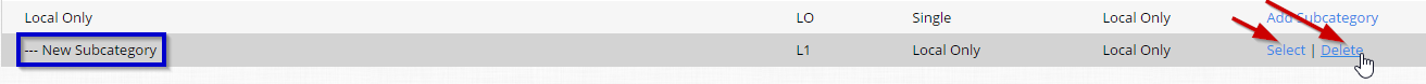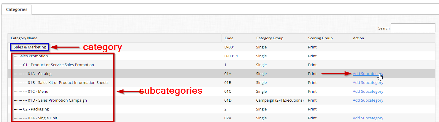 - To add the subcategory for an existing category, click Add Subcategory link next to the target parent category.