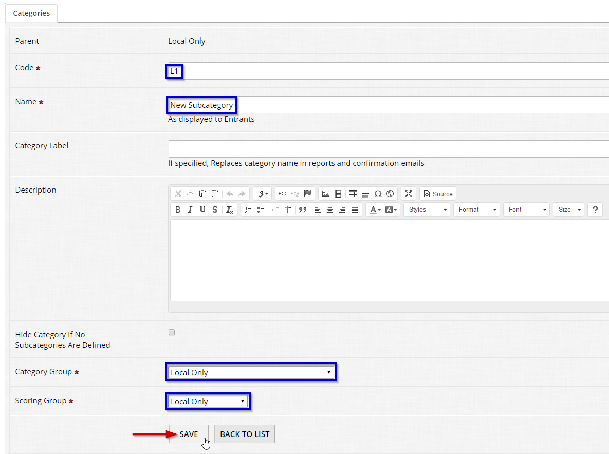 - Click Save to create the new subcategory.
