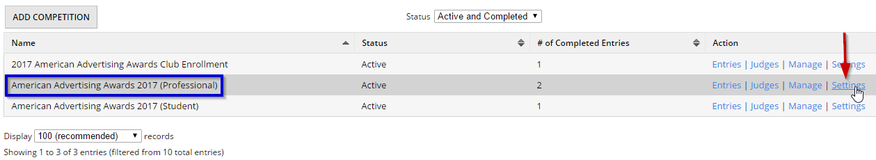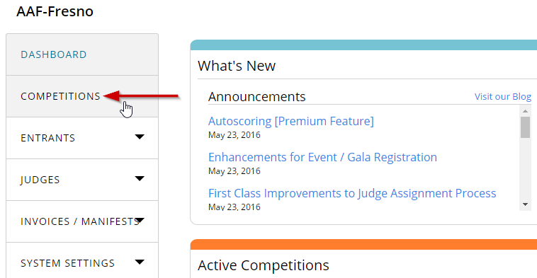 - From Dashboard click on Competitions in the left-hand menu.